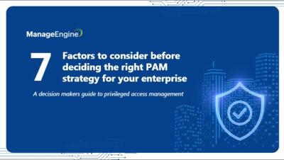 Over the years, privileged access management has evolved from a nice-to-have component of identity security into a critical business necessity. Whether you're looking to adopt a PAM strategy for the first time or evaluating alternatives to your current setup, selecting the right approach for your enterprise requires careful consideration. Join Ganesh, Global Head of Support Services at ManageEngine, to explore 7 key factors to consider before deciding on the best PAM strategy for your enterprise.
