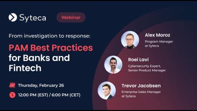 Watch our cybersecurity webinar to discover how banks and fintech organizations can implement PAM best practices with confidence - bringing together detection, investigation, and response stages while meeting demanding compliance requirements. You’ll learn the following key topics: How financial organizations deal with PAM incidents. How to build an advanced PAM + ITDR framework. An investigation-to-response cybersecurity strategy with Syteca. Real-world case studies demonstrating how financial organizations protect critical infrastructure. Live demo: see Syteca PAM + ITDR in action.