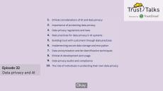 This podcast focuses on the ethical implications of AI’s data usage, emphasizing the importance of transparency, informed consent, and robust security measures. It discusses the ethical considerations and best practices for data privacy in the age of artificial intelligence (AI). It is a platform offering resources and tools for governance, risk, and compliance (GRC) and support for various compliance standards like GDPR, HIPAA, and ISO 27001, utilizing AI to streamline audit processes.