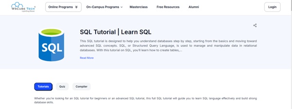 What truly sets WsCube Tech apart is its built-in online SQL compiler and SQL playground. Learners can write, run, and test SQL queries directly in the browser without installing any database software. This encourages consistent SQL practice online free, which is essential for mastering SQL.