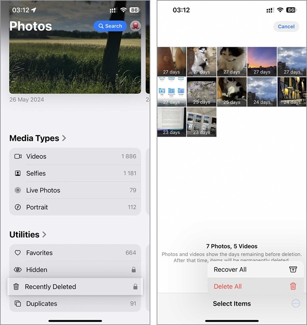 - Empty the Recently Deleted album