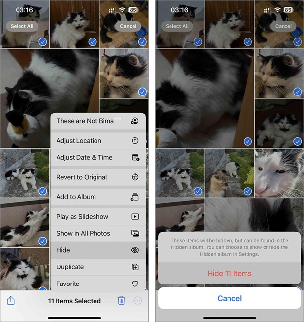 - Browse and select the photos you want to hide.