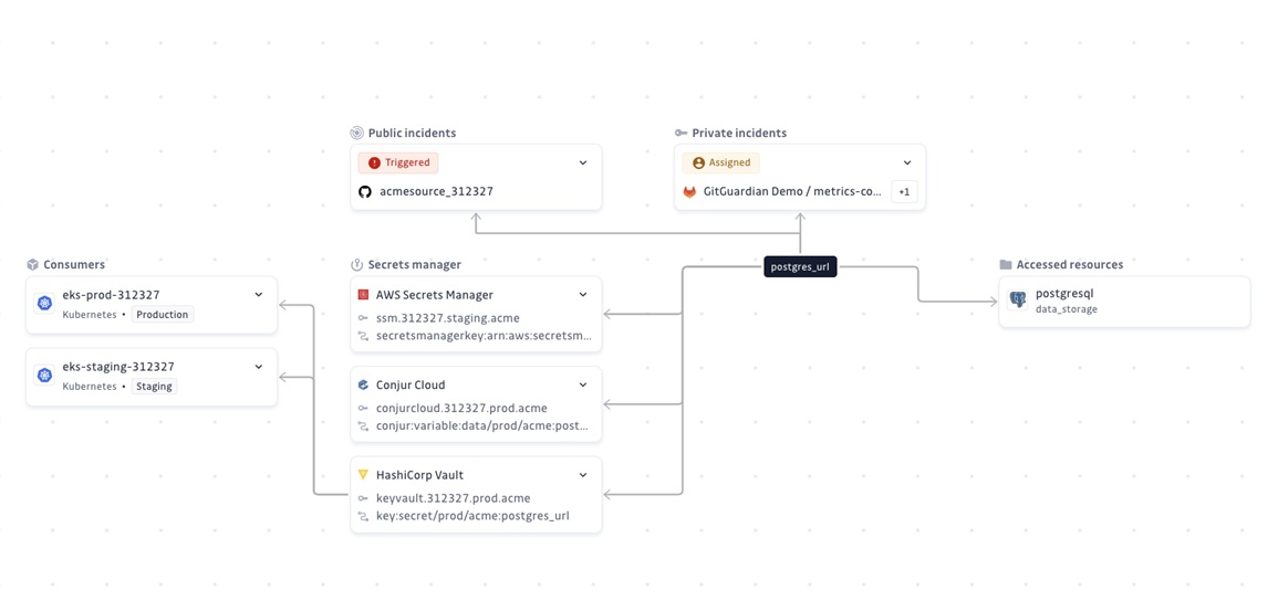 - Streamlined incident remediation – Accelerate remediation of compromised secrets by integrating directly with secrets managers.