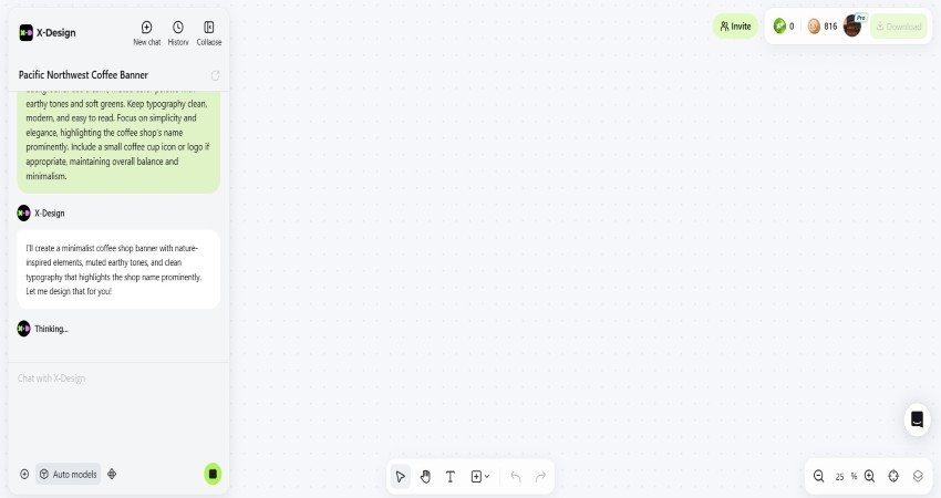 The most intimidating thing in design is the empty white square. Most software hands you this void and a set of brushes, expecting you to know what to do. That is a flaw. X-Design operates on the premise that you are not a designer and you probably shouldn't try to be one. You are a business owner with a specific intent. The platform replaces the blank canvas with a conversation. You don't drag shapes; you explain your business.